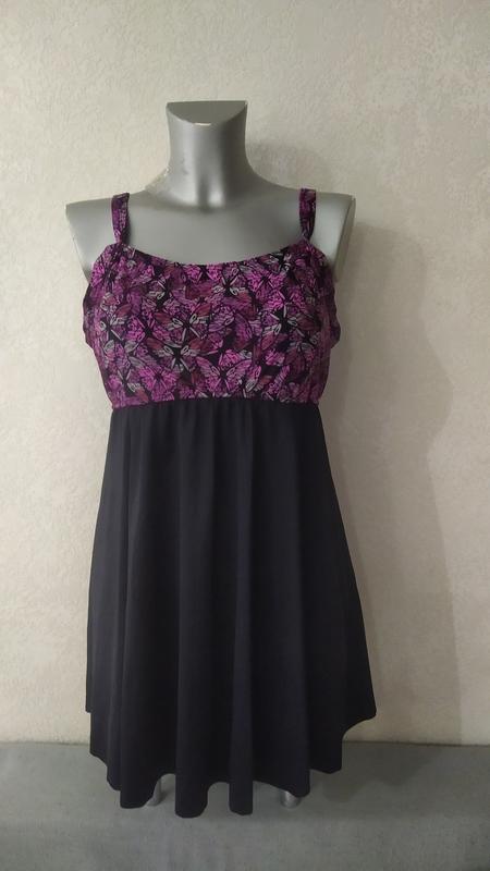 Предлагаю Вам брендовое белье! Стильный, качественный, красивый купальник платье из стрейч-полиамида. Полностью весь на подкладке, сзади и впереди. С отличным эффектом утяжки. Чашки на поролоне, под грудью резиночка для отличной поддержки груди. На плотных бретельках Красивая стильная расцветка Ткань быстросохнущая, очень приятная на ощупь! Смотрится очень стильно! Прекрасно сидит на фигурке! Красиво выделена линия декольте! Вещь новая, с бумажной биркой! Размер указан UK - 16/EUR - 44, идет на наш 48(L) Длина платья от бретели до низа - 80 см Длина купальника от плеча до паха - 79 см длина платья по боковому шву - 53 см Купальник - Полуобъем под грудью -41 см тянется до 52 см ПОБ - 47 см, тянется до 61 см! Платье - Полуобъем под грудью - 43 см, тянется до 55 см НОВЫЙ