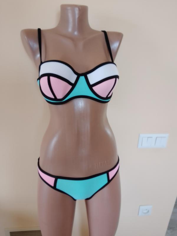 Яскравий купальник. Розмір верху S,низу М.Тягнеться максимально.