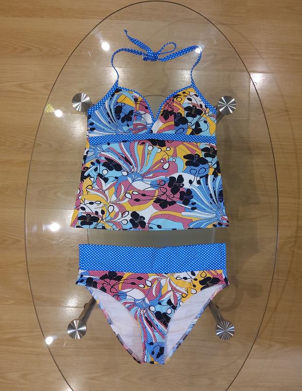 Купальник роздільний, розмір L. Заміри дивіться на фото, іде по розміру, не маломірить. Стан ідеальний, тканина і всі резиночки у нормі. Пересилаю після оплати на карту.