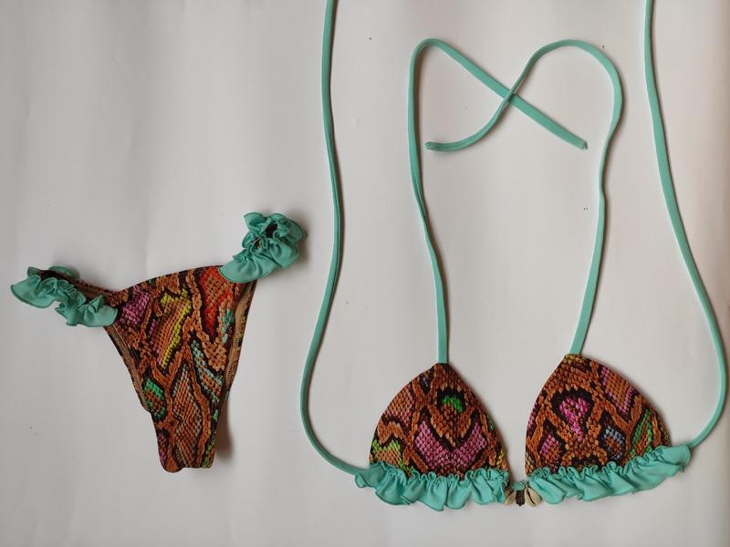 -💖 Безпечна оплата, накладений платіж, швидка відправка та інші плюшки для вас : ) - ⭐фото на тілі не роблю, вибачте ) - ⭐заміри: напівобхват речі від спокійного до розтягнутого стану - ⭐читайте опис товару повністю: Новый разноцветный со змеиным принтом рептилии голубой раздельный купальник бикини пуш-ап бразилиана швом пушап рюшами на завязках треугольник лиф от Nellykini Switzerland (пр-во швейцарии) размер "EU32-38\С" Треугольники лифа 13-15*15 см Полуобхват талии трусиков 28-46 см Посадка 20 см Состояние новое с пломбой и защитой от примерки. Цвет насыщенный с ярким принтом и рюшами голубого цвета,также на лифе, есть небольшие ракушки,по середине. Материал средней плотности,двойной,гладкий и отличного качества, тянется. Лиф со сьемными вкладышами параллона,а на трусиках ,сзади,шов бразилиана.Эксклюзивный бренд белья ручной работы. Изначальная цена 399 евро. Цена 1999 грн Есть еще два купальника этого бренда,разной расцветки и тоже со швом бразилиана.