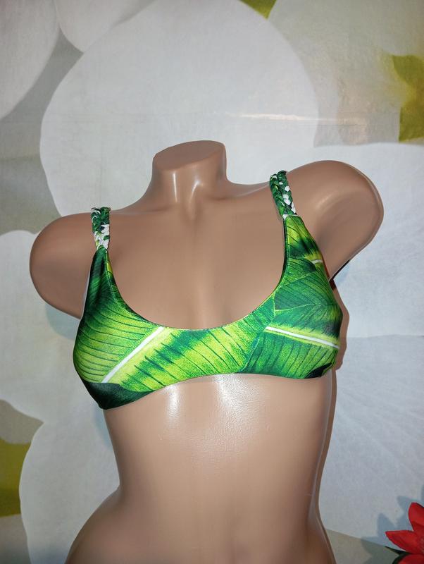 Ліф від купальника в листяний принт розмір вказаний S. Є пушап.Ліф підійде на груди A. Тканина тягнеться Без нюансів Записуйтеся на свої оновлення 🌹🌺💐