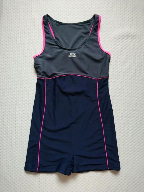 В дуже хорошому стані. З дефектів є плямки на сірому фоні трохи полиняло рожеві брительки. Розмір 16. Матеріал поліестр. Висота від плеча до низу 74 см, до паха 72 см. Під руками 39 см і тягнеться до 62 см. Півобсяг пояса 37 см і тягнеться до 62 см, бедер 41 см і тягнеться до 70 см