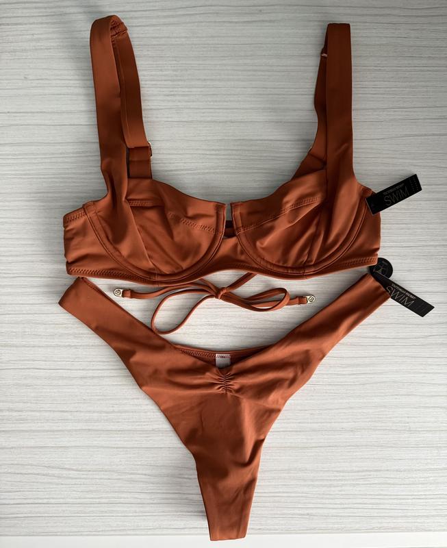 VICTORIA’S SECRET SWIM Купальник топ з мʼякою чашкою 34b (75b), плавки стрінги розмір s (на обʼєм стегон 90-96см). Колір - Apple Cinnamon