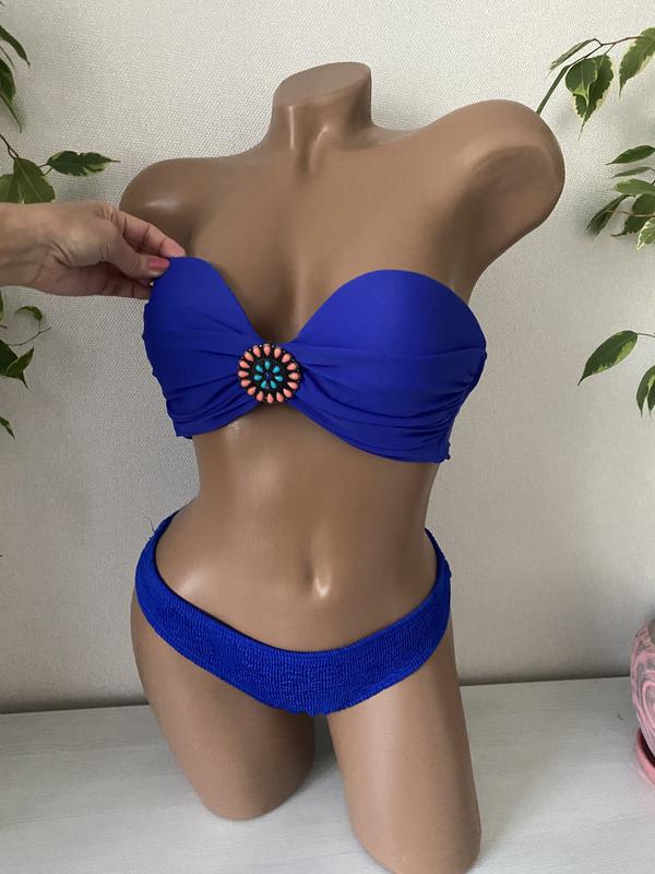 Красивий збірний купальник насиченого кольору електрик Плотна сформована чашка з ефектною брошкою Стан ідеальний, без ньюансів Всі заміри на фото Пляжну накидку , яка чудово пасує до цього купальнику, можна теж придбати окремо (195 грн)