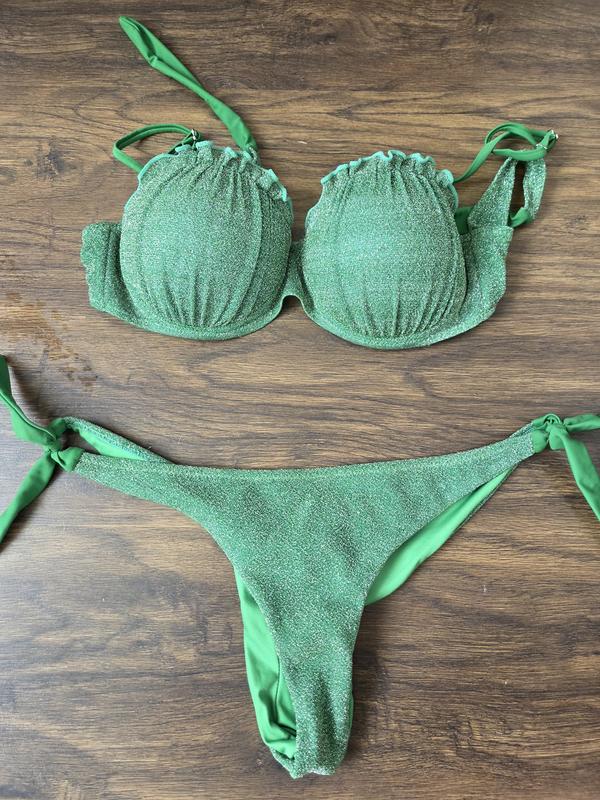Купальник раздельный, люрекс, блестящий, с чашкой