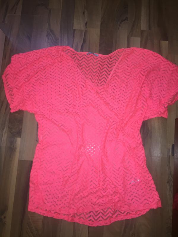 Пляжна накидка, колір кораловий. Парео - по талії - 61 см, по низу - 67 Рукав від горловини - 37 см 100% поліестер Пишіть відповім на всі питання Дивіться інші мої оголошення