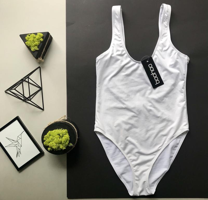 Идеальный сдельный белый купальник с открытой спиной Шикарно смотрится,идеально в обтяжку садиться по фигуре утягивает стройнит /плотная ткань /без чашек Размер S