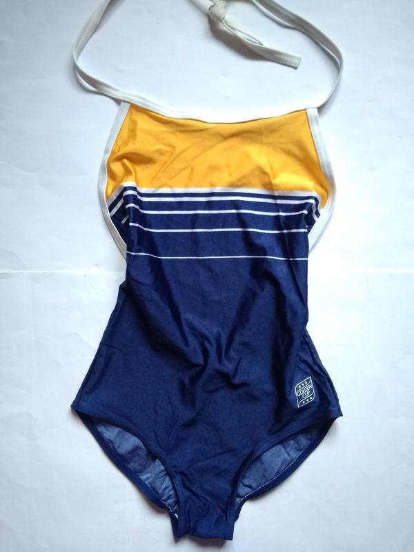 цілісний брендовий купальник з колекції golden cup! виробник Австрія. з цупкої красивою глянцевою тканини, з легким мерехтінням,при певному світлі переливається. стильна спортивна забарвлення, основний колір темно-синій, широка зав'язка на шиї, спинка глибоко до талії відкрита. Підійде як для басейну, так і оптимально на пляжний сезон. размер указан 38/10/м/ Но на мое мнение Реальный хс-с/6-8/наш 40-42/ на низкий рост/ или на подростка тоже отлично будет/ смотрите замеры- пог 32/под грудью 27/пот 25/поб 33,5/длина по центру самого изделия 51/ СТОК, НОВЫЙ с защитной пленкой на ластовице ВСЕ КУПАЛЬНИКИ ФИРМЕННЫЕ И КАЧЕСТВЕННЫЕ! НЕ РАСТЯГИВАТЬСЯ,НЕ ЛИНЯЮТ, НЕ ТЕРЯЮТ СВОЙ ВНЕШНИЙ ВИД ! НОСЯТСЯ ДОЛГО! смотрите все мои другие товары. предлагаю фирменное белье и купальники мировых европейских брендов!