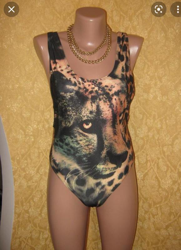 суцільний, гарний купальник у тигровій принт. Розмір 14/42/ ХL заміри: НІГ 40 см нот 36 см + тягнеться до 50 см ніс 40 см + тягнетья до 60 см Довжина з бретелями 66 см без пуш-ап ззаду є підкладка Тягнеться дуже добре.