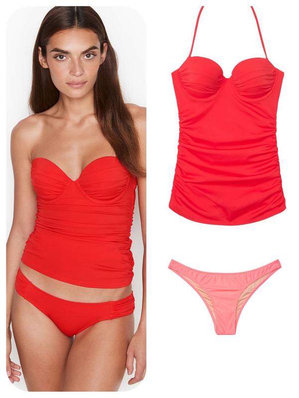 Красивий незвичайний пляжний комплект Victoria's Secret - червоний топ танкіні та чорні плавки. У такому ви завжди виділятиметеся на пляжі. Топ Las palmas push-up tankini top з прибраними боковинами та відкритими плечима. Чашки з пуш ап ефектом чудово підтримують і зроблять гарне сексуальне декольте. Є знімні зав'язки для додаткової підтримки. Колір - Cheeky Red Розмір 34B Трусики модель Zuma micro bikini неймовірно сексуальні, красиві та комфортні, вигідно підкреслюють лінію стегон. Є маленький золотий логотип. Колір - Fizzy Fuzion Розмір S. Надсилання Міст експрес, укр або новою поштою, накладка з передоплатою на пересилання. Запитуйте, на всі запитання намагаюся швидко відповідати