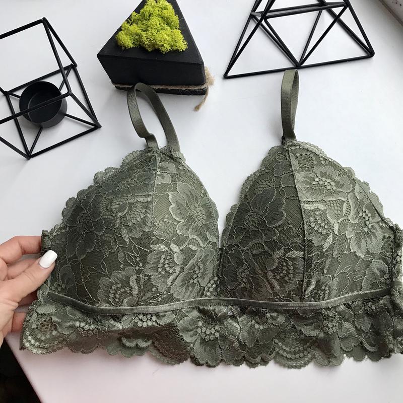 Шикарный кружевной браллет /бра /бюстгальтер хакки