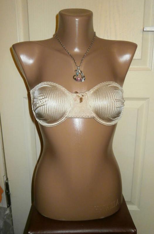 Чашка без поролону. Є можливість носити з бретелями. Спинка просиліконена. Розмір 32b 70b. Застібка - гачки та люверси у два ряди. Стан дуже хороший