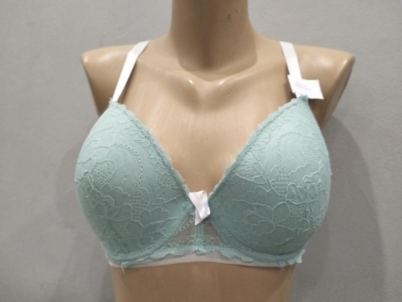 360. Бюстгальтер, ніжно-бірюзового кольору, мереживний, на паралоні, розмір 85D(38D), заміри на фото етикетка зарізана, стан майже новий