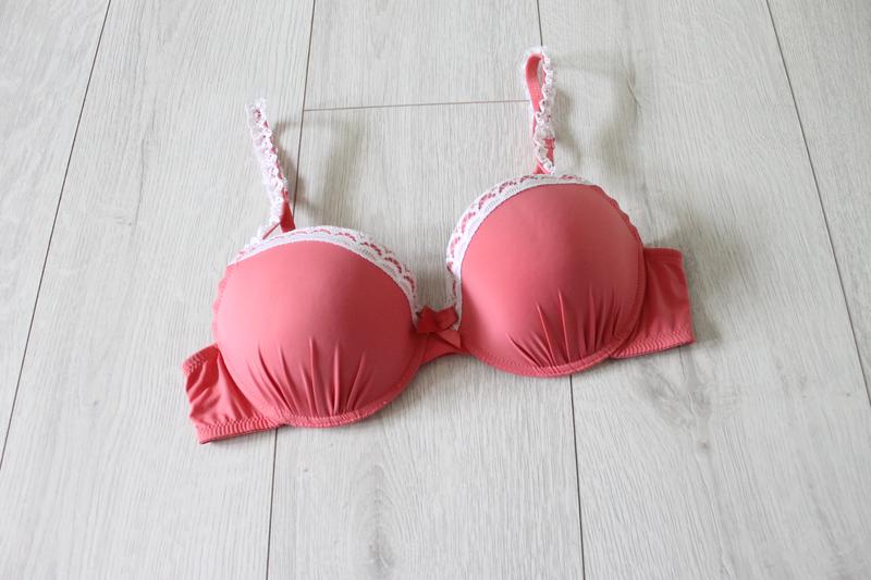 рожевий бюстик з мереживом Colours of the world, розмір вказаний 80B (глибина чашки 18,5 см), без пуш-ап, але чашечка щільна, на кісточках, бретелі не знімаються , під грудьми 69 см стан 5 ціна 155 грн