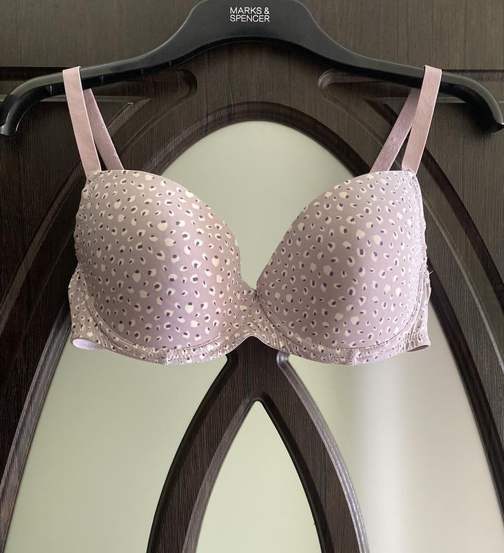 Шикарний базовий, бюстгальтер, в бузковому, кольорі. Дуже мягенький, в середині. Дуже зручний, на кожен день, красиво, і сексуально, виглядає на грудях. Брендовоі фірми: Primark. Заміри чашки бюстгальтера: ширина 19 см. довжина 14 см. Розмір вказано: 34D/75D. Склад : полімід 88%, еластину 12%, В обхваті, в спокійному, стані 73 см. тянеться до 92 см.