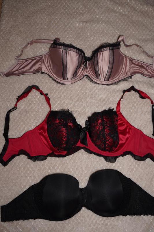 Размер указан на фото после каждого бюста, замеры в описании Цена указана за три(снизу вверх) длина бюстгальтера в расстегнутом состоянии- 60 см (+тянется 74) чашка сверху вниз 17,5 ширина 21 65 см (+тянется 79) чашка сверху вниз 17 ширина 21,5 68 см (+тянется 82) чашка сверху вниз 15 ширина 21 идеальное состояние дефектов нет