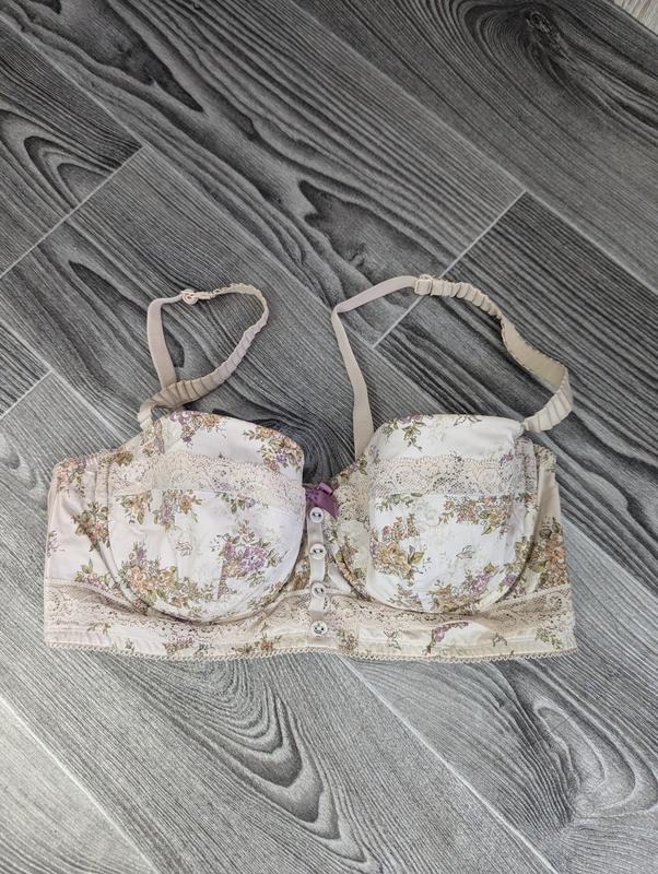 Колір: біживий. Малюнок: квіти. Бренд: M&S (Велика Британія). Виробник: Шрі-Ланка. Матеріал: 41% бавовна; 29% поліамід; 13% еластан. Розмір: 85В. Виріб добре тягнеться. Стан: ідеальний. Відправляю УкрПоштою, НовоПоштою, Meest, Розеткою. Дивіться також мої оголошення, товари європейської якості за приємними цінами. Якщо є питання надам відповіді на сайті.