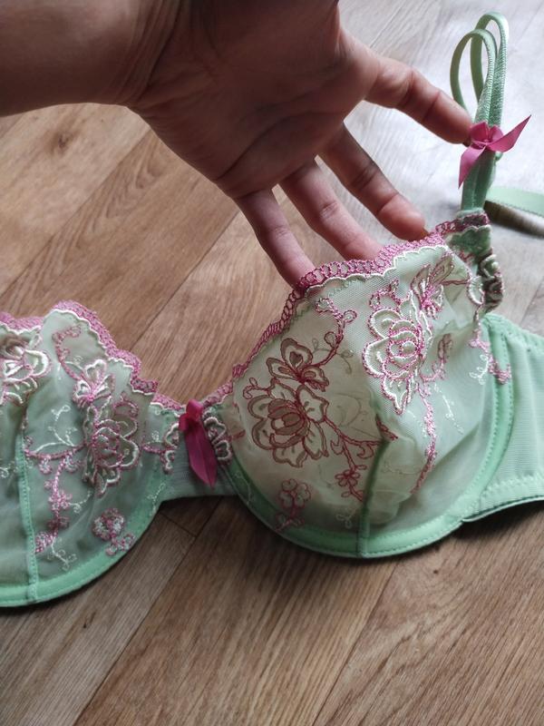 Рада вітати Вас у своєму магазині. Продаю як власні речі, так і секонд, сток. Тому можливий специфічний запах обробки, який зникає після прання. Шикарний напівпрозорий мереживний бюстгальтер від бренду Next. Стан ідеальний. Якісна, приємна до тіла тканина. На кісточках. Бретелі регулюються, незйомні. По бірці розмір 75DD. Дивіться уважно заміри. На тілі виглядає неймовірно ефектно і сексуально.