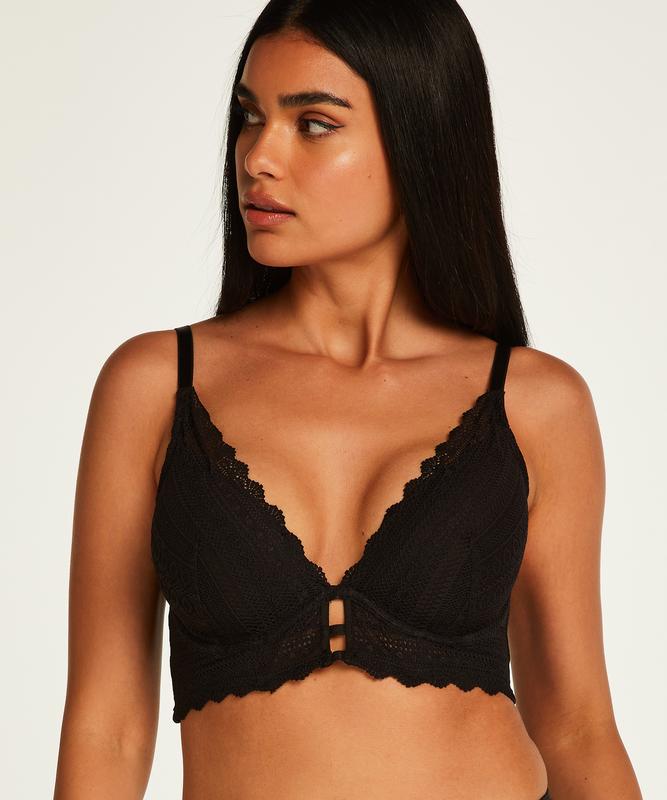 Бюстгальтер від голландського бренду Hunkemoller. Чашки ущільнені, на кісточках. Бретелі регулюються. Верх щільне мереживо. (10834) Розмір: 38С/85С Об'єм під грудьми: 75 см, тягнеться до 95 см Ширина чашки: 21 см Висота чашки: 20 см Склад: 86% поліамід, 14% еластан