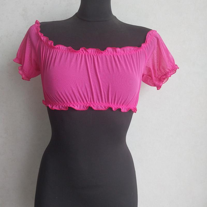 Топ-бандо "зефірка" з рукавами, з еластичної білизняної сіточки ручної роботи малинового к...