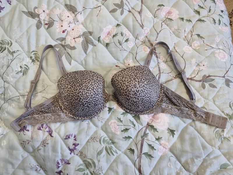 Бюстгальтер пуш-ап calvin klein eur 80dd us 36dd з мереживом леопардовий принт сірий