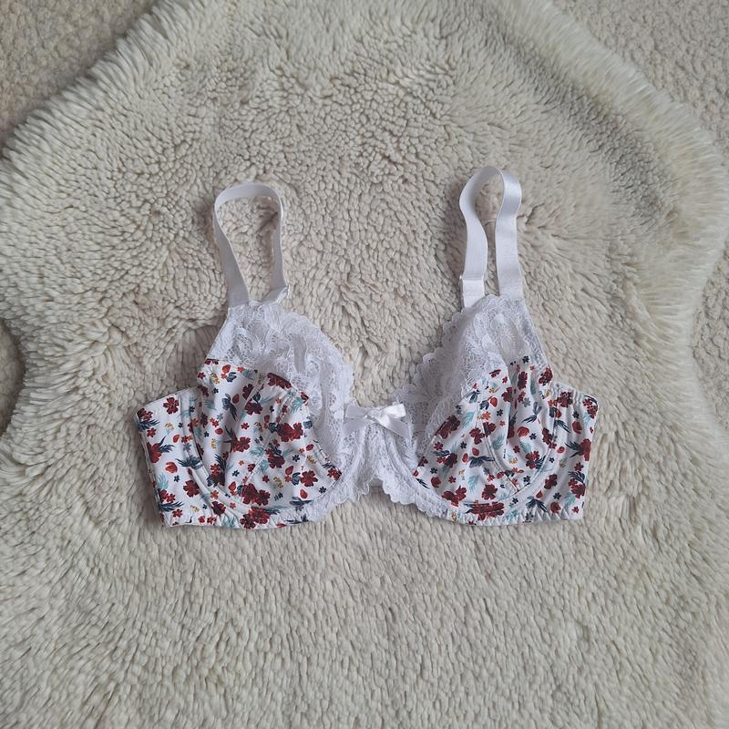 Бюстгальтер з мереживними вставками, новий, сток, без паперової бірки. Обхват під груддю в ненатягнутому вигляді 68(71)см, тягнеться до 87 см, ширина чашки заглиблюючись 23 см, не заглиблюючись 15 см, висота чашки 18 см, довжина дуги по кісточці 25 см. (арт. КЗ3)