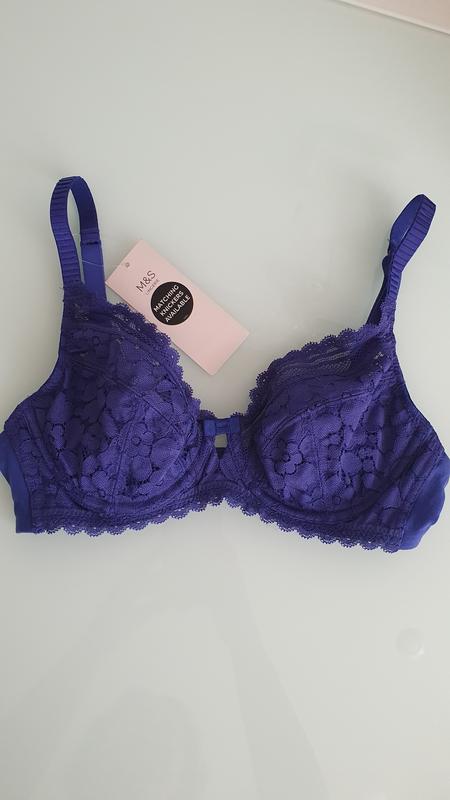 Новий, красивого синього кольору бюстгальтер від M&S. Склад:62% бавовна, 33% поліамід і 3% еластан. Розмір вказано 70/B. Заміри див.на фото. Пересилка по передплаті або безпечна оплата.