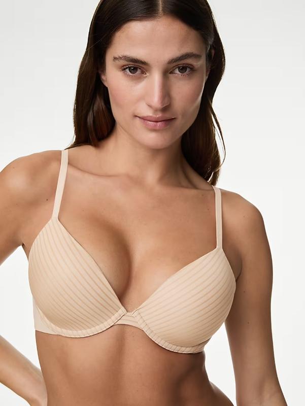 Бюстгальтер від англійського бренда Marks&Spencer. Чашки ущільнені, на кісточках. Бретелі регулюються. (12446) Розмір: 95F(42E) Об'єм під грудьми: 89 см, тягнеться до 120 см Ширина чашки: 29 см Висота чашки: 27 см Склад: 57% поліестер, 31% поліамід, 12% еластан
