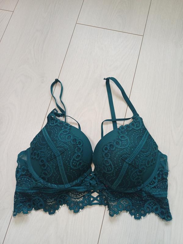 Перед оформлением заказ, пожалуйста, уточайте наличие Отправка УП, НП, Розетка В продаже очень красивый и эффектный бюстгальтер от бренда La Senza, линейка Hello Sugar, размер бирки указан 80В. Бюстгальтер изумрудного цвета, чашка очень плотная-мега пуш ап, дополнительные ремни-портупеи. Бюстгальтер удлиненный, выполненный из кружева и микросетки. Вся длина бюстгальтера-69см, высота чашки по центру с внутренней стороны-13,5см. Бретели можно соединять на спинке благодаря специальному крючку. Состояние бюстгальтера идеально