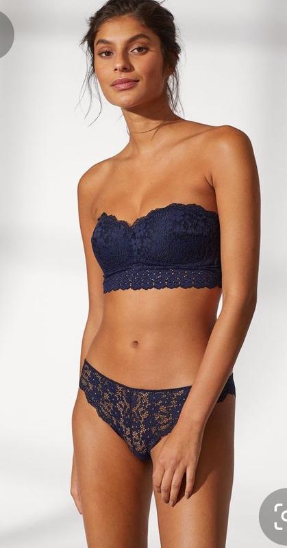 Синій бюстік H&M кружевний без бритель, дуже якісний, гарно тримається на тілі, щільна текстура, новий, без магазинних бірок, примірявся. 70/75 B