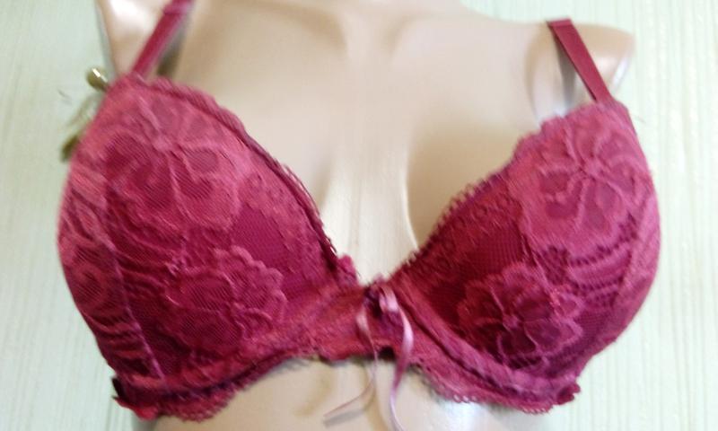 Бюстгалтер з пушапом, колір бордовий, мереживо. обсяг 80-85см/в