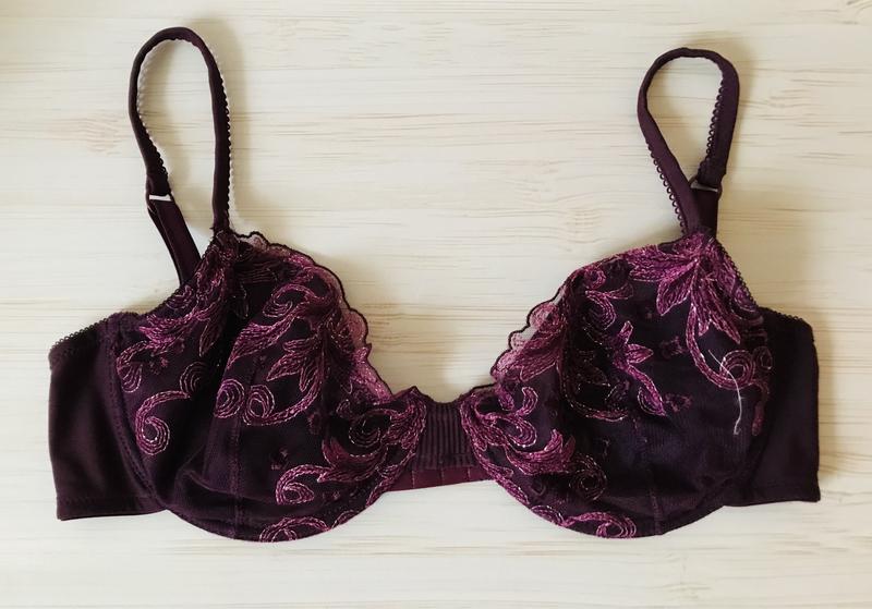 Дуже красивий , темно -бордового кольору , Розмір вказано 75 D, як на мене , то чашка С, м'яка .Довжина 75 див.