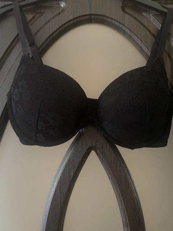Шикарний, ажурний, чорний, бюстгальтер, з супер пушапом. Дуже зручний на кожен день, красиво виглядає на грудях. Божевільною фірми: H&M. Виробник Бангладеш 🇧🇩. Заміри чашки бюстгальтера: ширина 18 см довжина 14 див. Розмір вказано: 80С. Підходить 75С. Склад : поліаміду 84%, еластину 16%.