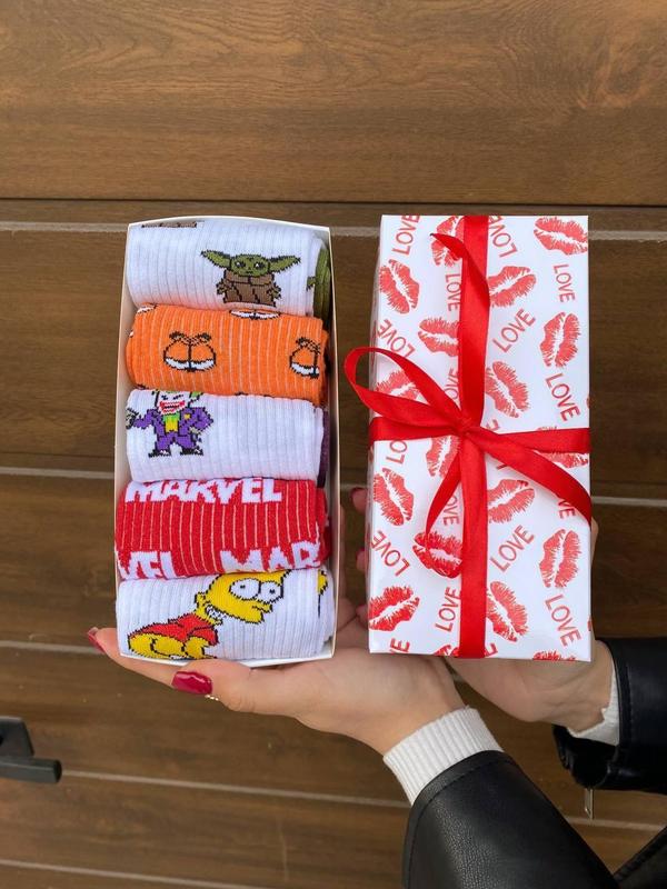 Набір жіночих шкарпеток 36-41 5 пар з мультяшним малюнком у подарунковій коробці