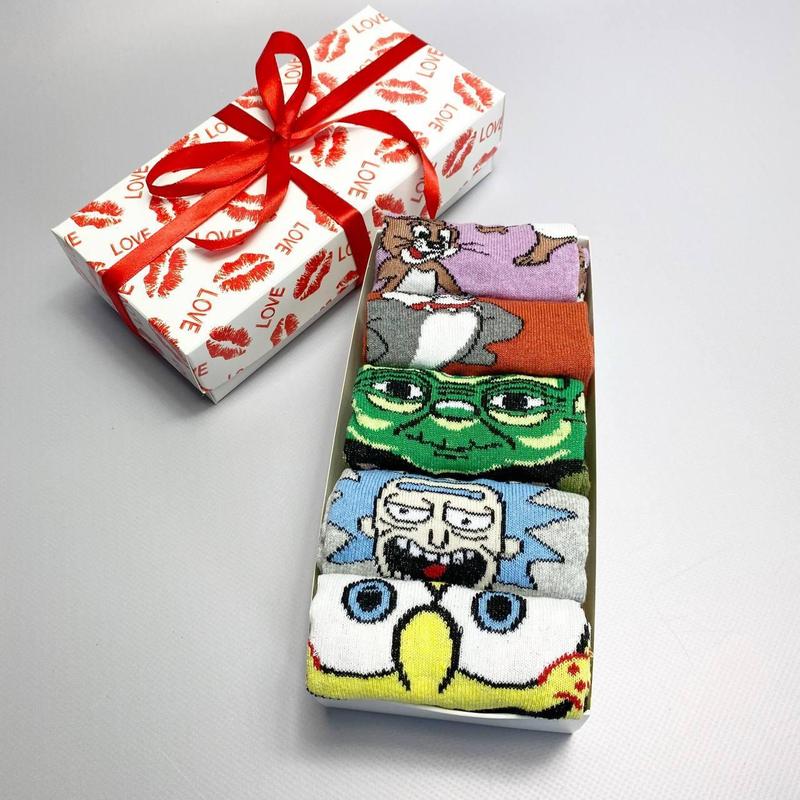 Набір жіночих шкарпеток 36-41 5 пар з мультяшним малюнком у подарунковій коробці