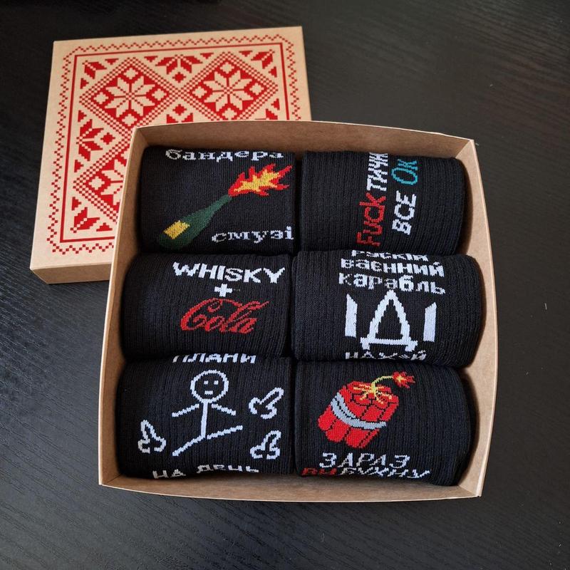 До комплекту входять 6 пар шкарпеток та паковання. - Розмір універсальний 36-41 - Сезон: Літо-Осінь-Весна - Довжина: висока - Преміум якість, гатунок 1 - Малюнок вишивка, не стирається. - Виробник: Україна - Склад: Бавовна — 90%; дорлостан — 10%