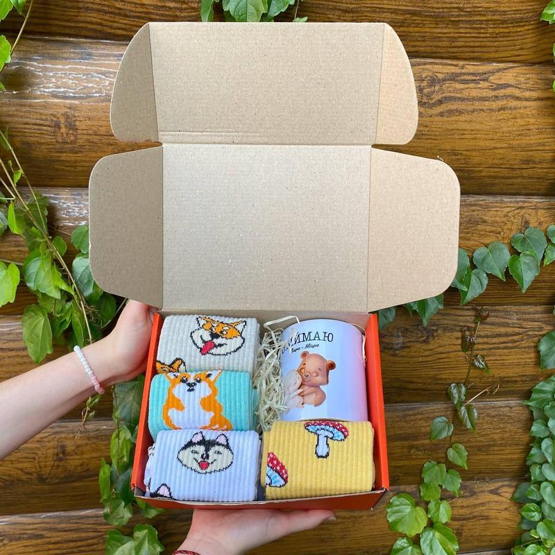 Подарунковий жіночий бокс шкарпеток "обіймаю" на 8 пар та кружкою|вигідна ціна|