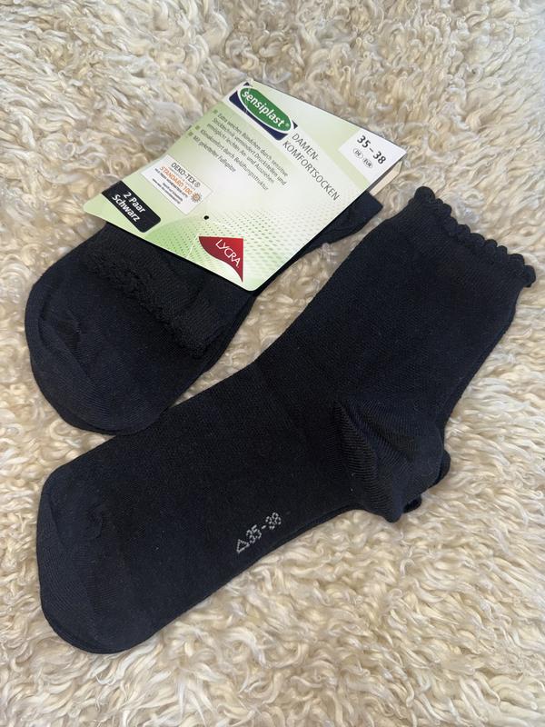 В продажу набір чорних жіночих шкарпеток середньої висоти. Мають мʼяку еластичну резинку, добре тягнуться. Якість 🔥, виробник Німеччина Розмір 35-38 Ціна за набір з 2-х пар 69% бавовна 29% поліамід 2% еластан