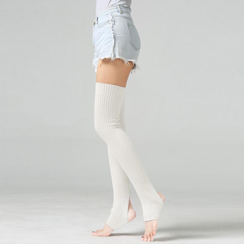 Гетри вище коліна молочні ( арт5117) теплі для танців з відкритою п'яткоювисокі гетри шам...