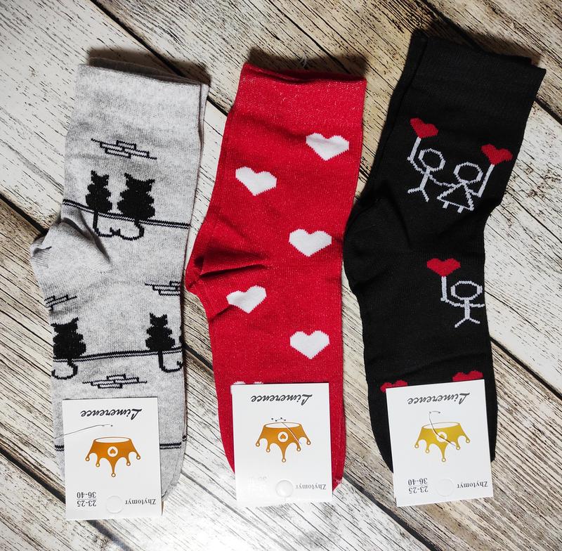 ШКАРПЕТКИ ЖИТОМИР "LIMERENCE" Стрейчеві ЖІНОЧІ (ВИСОКІ) Р. 36-40 -АСОРТІ(МІКС ВІЗЕРУНКІВ -СЕРДЕЧКА+КОТИКИ НА ЛАВОЧЦІ+ЧОЛОВІЧКИ...) Ідея для подарунка коханій на 14 лютого. Наявність уточнюйте.