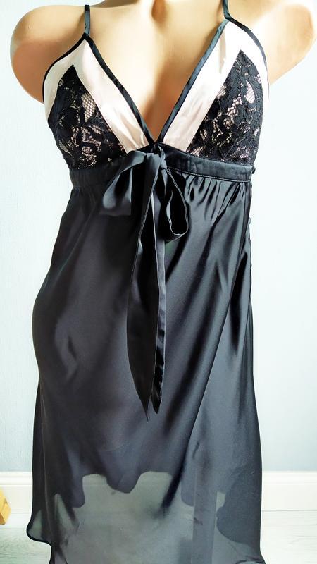 Вишукана нічна сорочка, застібка з повітряними петлями збоку, бретелі регулюються по довжині, оздоблення з мережива на ліфі, відмінна якість, не прилипає до тіла, розмір європейський 40, заміри: довжина по боковому шву - 70 см, під грудьми - 38 см (на обсяг 75-80 см), глибина чашки по горизонталі - 20 см, глибина по вертикалі - 19 см,