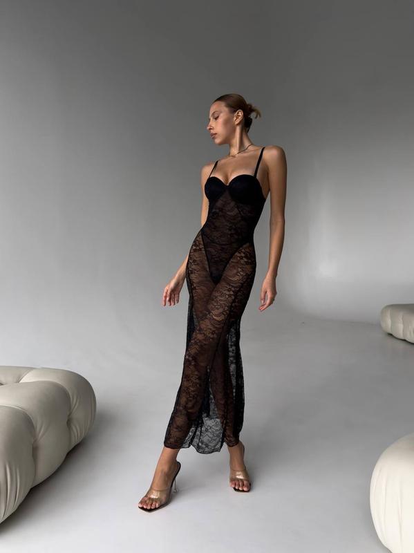 "DO3862 ( пеньюар) AS3403 (рукавички) AS1044 (чокер) 🖤 Готова підкорювати вечір? Цей образ - квінтесенція жіночності, загадки та пристрасті 🖤 Напівпрозора мереживна сукня - облягає тіло та створює силует мрії 🖤 Боді вшите , з застібкою внизу 🖤 Бюстик з поролоновими чашками на кісточках – забезпечує гарну підтримку і форму 🖤 Довжина міді - 126 см з бретельками (вони регулюються), довжина від чашки 117 см 👠 Ідеально для особливих вечорів, фотосесій або коли хочеш відчути себе незабутньою 💡Для повного ефекту - додай мереживні рукавички та блискучий чокер і твій образ буде неймовірно спокусливим та витонченим ✔️Розміри пеньюару: S: груди 85-90, стегна 86-95, М: груди 90-95, стегна 95-100 L: груди 95-99, стегна 100-105 ✨Чокер, рукавички не входять до комплекту, але можна додати до замовлення, щоб завершити ваш спокусливий образ 💰При покупці з білизною: • чокер 170 грн, замість 200 грн • рукавички 270 грн, замість 300 грн Замовлення можна оформити: - по повній оплаті на картку; - безпечною угодою від Шафи; - накладним платежем по мінімальній передплаті 150 грн. Швидка відправка 1-2 дні.💌 "