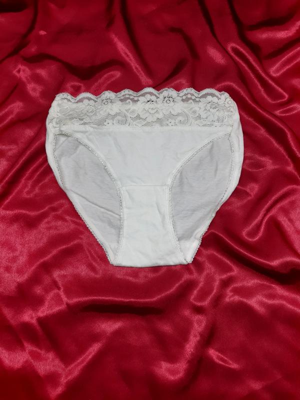 Идеальные белые кружевные хлопковые однотонные трусы трусики на высокой средней посадке с...