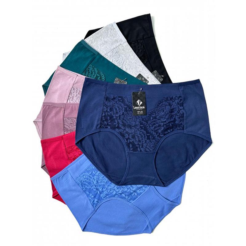 Жіночі труси сліпи 12582 - 7 шт. Матеріал: бавовна Розмір: 3XL 4XL 5XL на бирки вказано розмір більше Кольори як на фото – фабричне складання. Доставка: Нова пошта, надсилання протягом 2-4 робочих днів. Відповідно до Закону України 3161-IV від 01.12.2005 «Про захист прав споживача», нижня білизна входить до переліку товарів, що не підлягають обміну або поверненню.