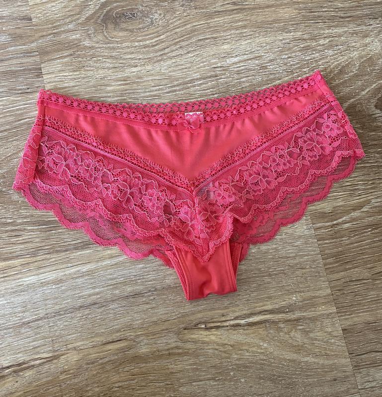 Шикарні, трусики, ажурні, розового, кольору. Дуже зручні, на кожен день . Красиво, виглядає на фігурі. Брендовоі фірми: M&S. Виробник Бангладеш. Розмір вказано: S. Склад : 45% полімід, 30% полістер, 15% еластін. В середині, підкладка 100% котон.