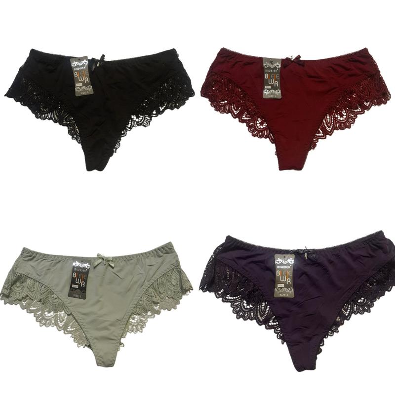 Жіночі трусики великих розмірів Виробник спідньої білизни: Biweier Розмір жіночих трусів: L, XL Труси американки зроблені з Якісного мережива. Колір жіночої спідньої білизни: олива