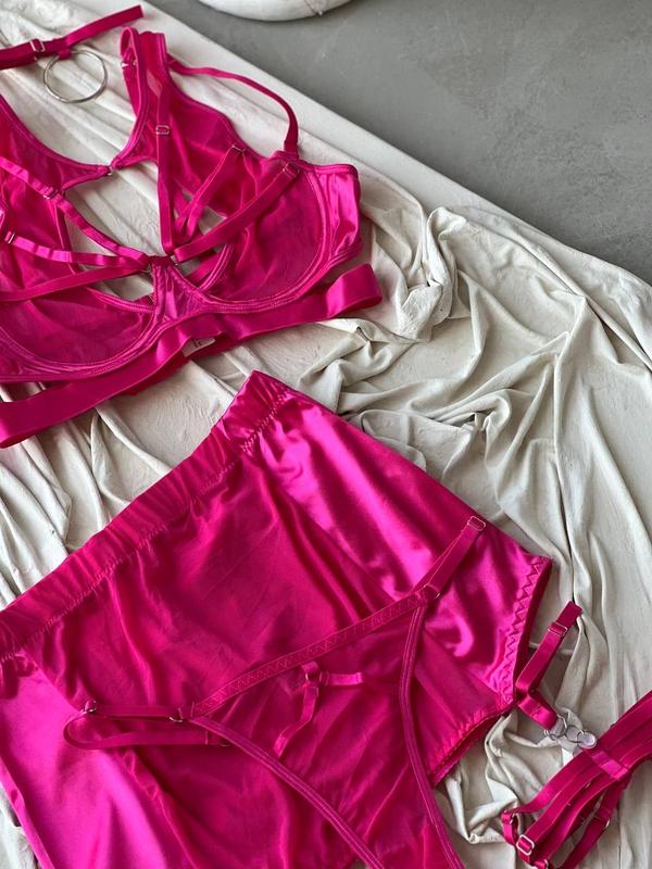 Зваблива рожева білизна зі спідницею і підвʼязками. еротична білизна з чокером, спідницею...
