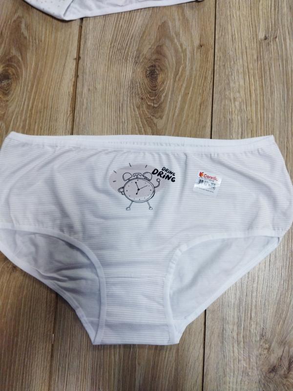 Трусики донелла известны своим качеством и доступной ценой. Шеются они в Турции на высококачественном оборудовании, поэтому все швы и обверложка равны, без высших нитей. Склад тканини - 95% бавовна, 5% еластан. Хорошо тянутся, приятны на ощупь, не создают парникового эффекта. После многочисленных стирок не меняют цвет и форму. Цвет - белый. Размер XXXL, объем бедер 110-114 см. код 4692 Заходите в мой магазинчик, там есть много интересных качественных товаров: нижнее белье, носочки, колготочки, кофточки, штанишки, шапочки, тапочки, текстильные изделия для дома, термобелье и многое другое. Буду рада вас видеть у себя в гостях. Подписывайтесь на мои обновления. Высылаю новой почтой и укрпочтой, оплата на карту Приватбанка и безопасная оплата на Шафе. Пишите - всем отвечу.