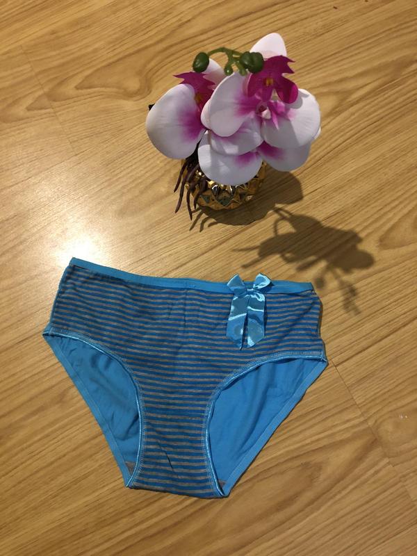 Трусики Monthlove блакитні, чудово тягнуться, напівобхват талії 31 см, напівобхват стегон 34 см, висота посадки 25 см. Розмір вказаний 3 ХЛ, але підійдуть на ХЛ, 2ХЛ.стою ідеальні, були одягнені один раз, неквапом підходить розмір