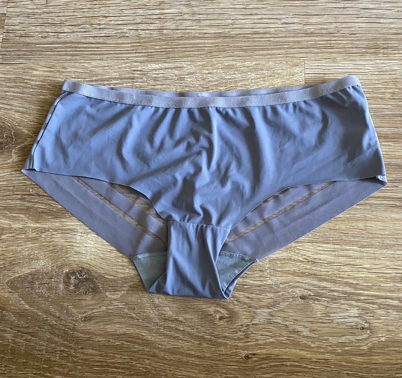 Шикарні, трусики, безшовні, в сірому, кольорі, з заднього плану, в смужку . Дуже зручні, на кожен день. Красиво і сексуально, виглядає на фігурі. Брендовоі фірми : Tu. вказано розмір: L. Склад: 70% полімід , 30% еластичну. В середині підкладка 100% коттон.